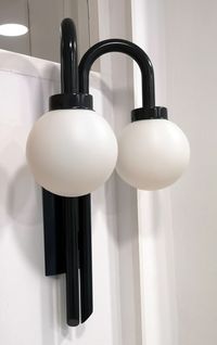 Aplique pared doble fabricado con tubo de acero de 30mm., altura 600mm. y pintados en rojo burdeos , negro o blanco; con globos politeno diámetro 17 o 25 bayoneta.