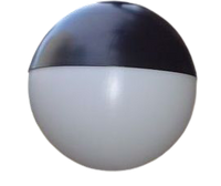 -Globos policarbonato o polimetilmetacrilato (PMA) con protección superior anticontaminación lumínica : para cualquier medida de globo del catálogo , en su media parte superior damos una capa de imprimación especial y reflectante y dos capas pintura de color blanco, gris o negro encima.